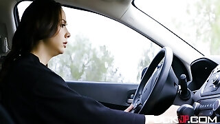 Caucasian teen brunette has hooked up with a black guy just to feel his trouser snake inwards her