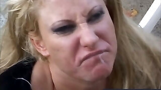 Sexy Milf On Her Knees Sucks Cock Until Receiving Huge Cum Load & Guzzling