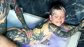 My stepsister is a freaky goth with lots of tattoes everywhere. She loves boinking with me, slurping my cock and moaning, as she rides it for hours