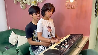 Unexperienced Homemade - Stepmom girl with small tits masturbation while give an awesome handjob to her boyfriend