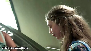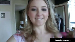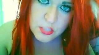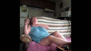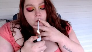 süße blondine im roten kleid raucht und lutscht schwanz bis der freund in mund und gesicht spritzt