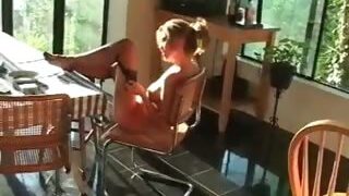 nachdem sie beim rauchen erwischt wurde, lässt die blonde milf ihren rock hochheben und ihre rasierte muschi zur disziplin schlagen