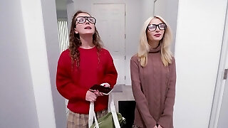 step sister FEMDOM teasing stepbrother, cbt, plunging HUGE DILDOS deep in his caboose, butt plug, glass dildo, cumshot