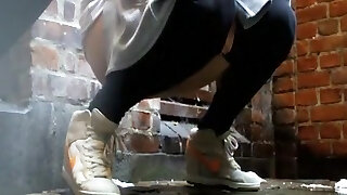 Very beautiful shaved vagina of a white chick filmed during pissing