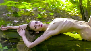Svelte bombshell Amelia Clitoris gets rid of her clothes to pet her own twat