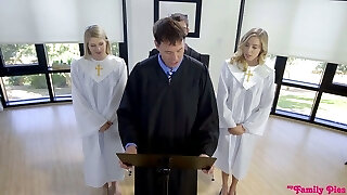 Sinful babe Haley Reed goes naughty on a hard pole in front of priest